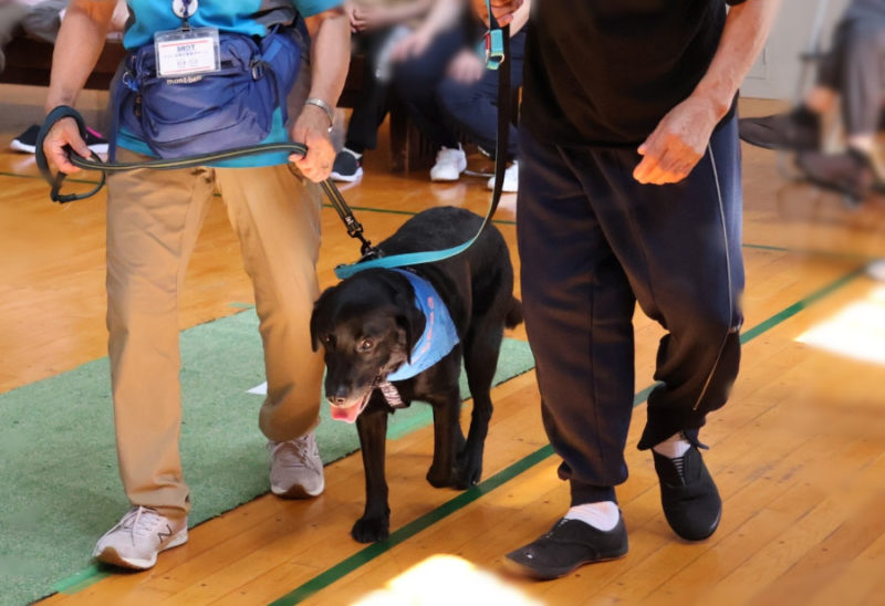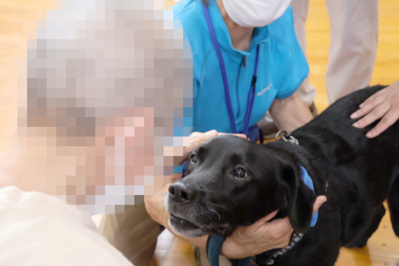 最後にもう一度ふれあいの時間を楽しみ、今度は少し積極的に犬に手を伸ばしてなでる方もいらっしゃいました。名残惜しい気持ちの中でごあいさつをして退場しました(齊藤美恵子)。