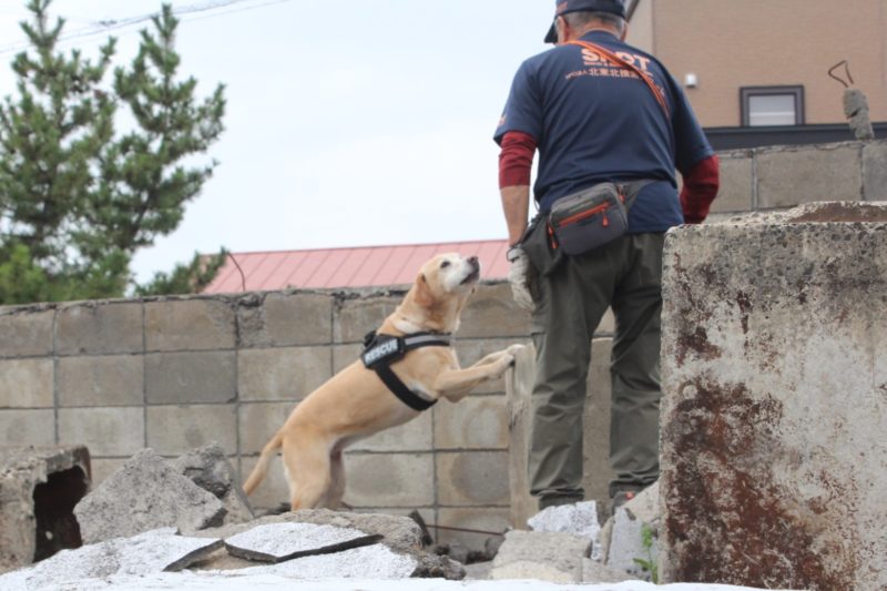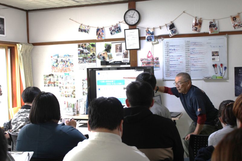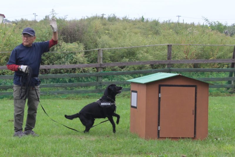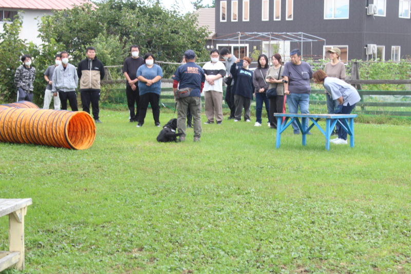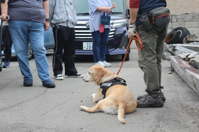 災害救助犬の必要性、訓練方法、今までの出動経歴、今後の展望について説明させていただきました。皆さんに熱心に聞いていただき、外でのデモンストレーションも興味深く見ていただきました。