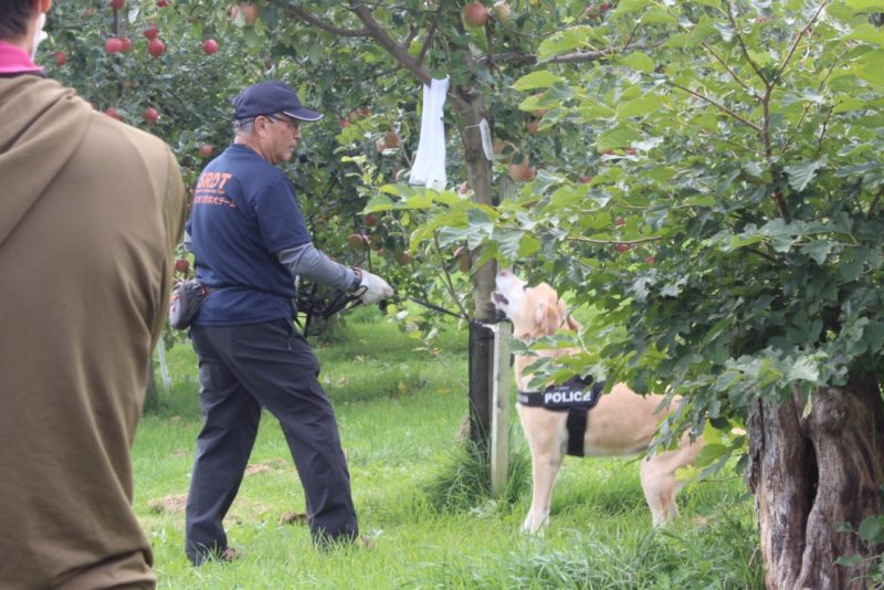 青森南警察署の一日警察署長のイベントに警察業務の紹介として嘱託警察犬のデモンストレーションを行いました。一日警察署長のほかに一般の方々も参加してくださり、嘱託警察犬の事を知ってもらう良い機会になりました(岩本良二)。