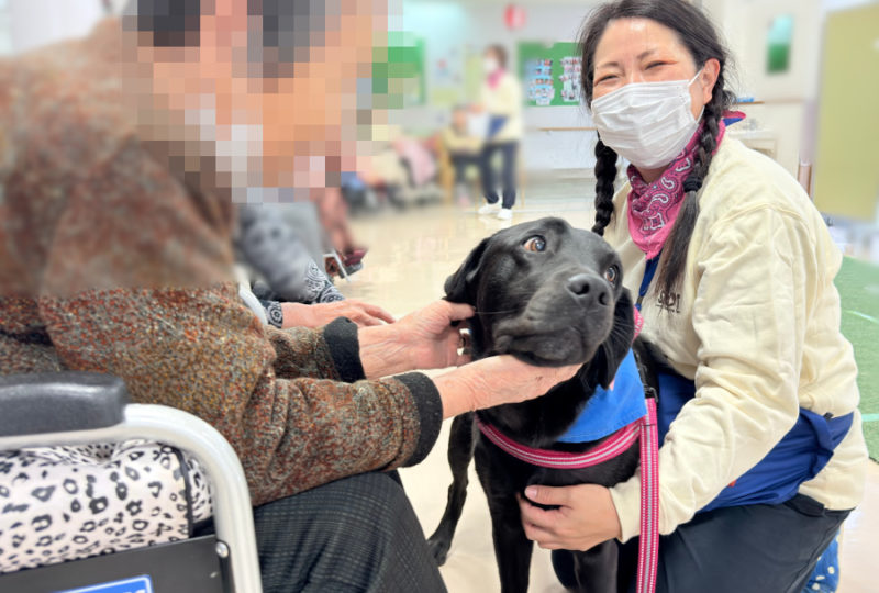 そしてお待ちかねのふれあいです。楽しみにしていてくださったようで、多くの方が犬たちをやさしくなでながら笑顔を見せてくださいました。