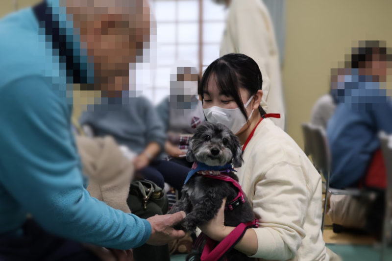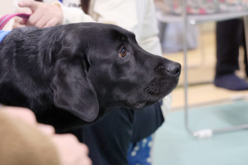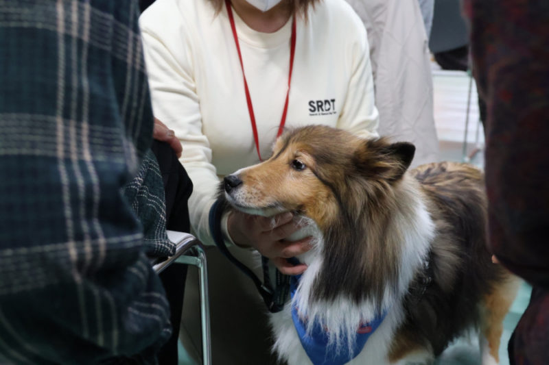 続いて、みなさんのもとへ伺ってのふれあいタイムです。地域の方が多く参加されていて、犬たちの頭をなでながらお話も弾み、にこやかな表情がたくさん見られました。
