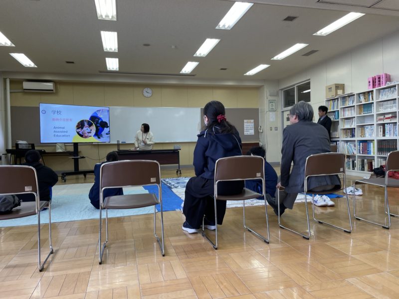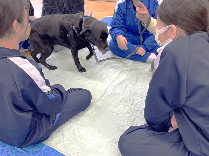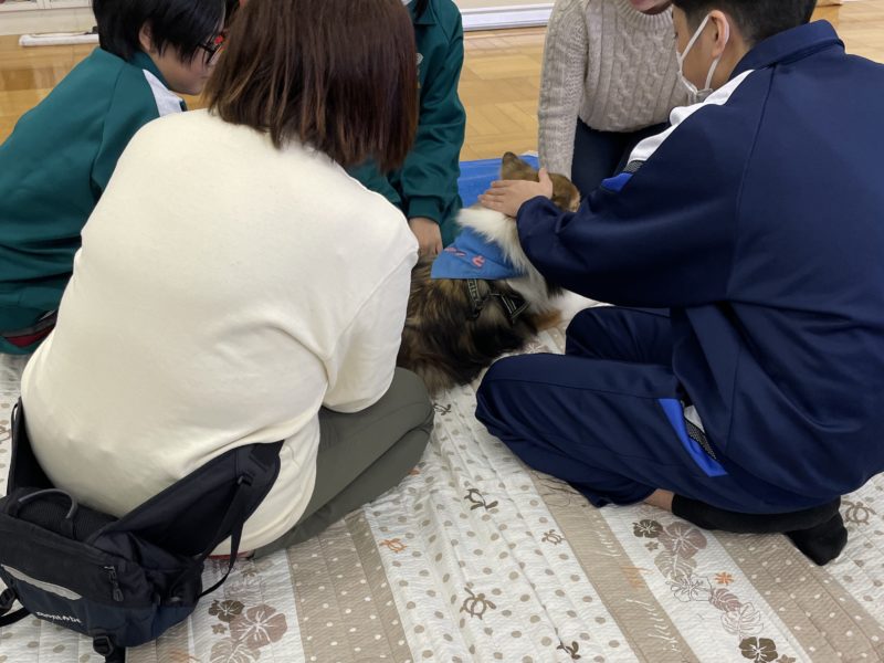 初めは恐る恐る触っていた生徒さんもいましたが、犬のぬくもりややさしさに癒され次第に離れられなくなった様子でした。今後も継続した活動で心と身体に、犬の持つ不思議な力が少しでもお役に立つことが出来たらと思います(岩本久子)。