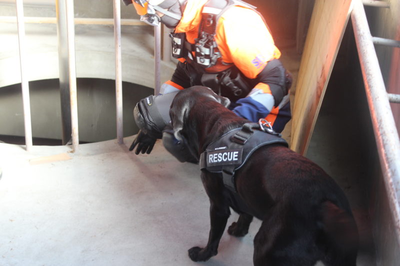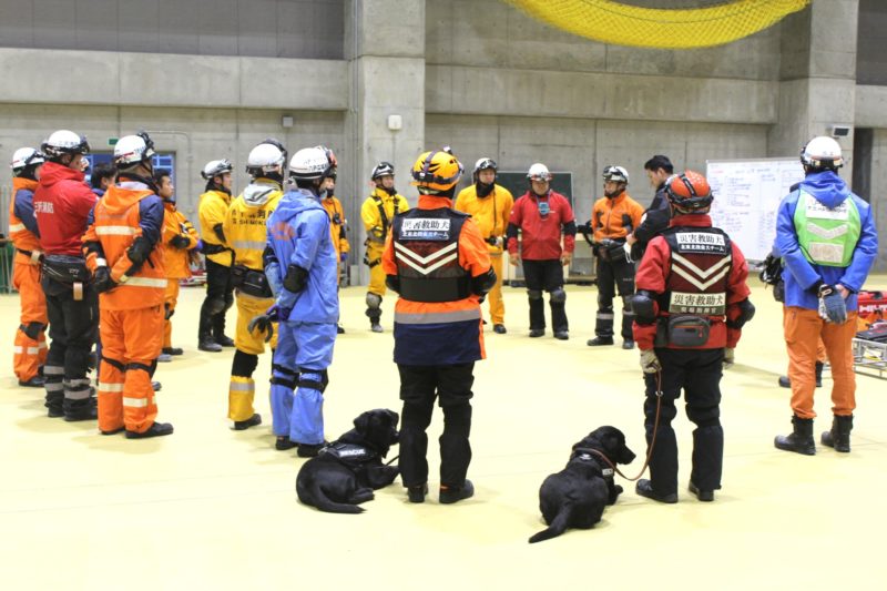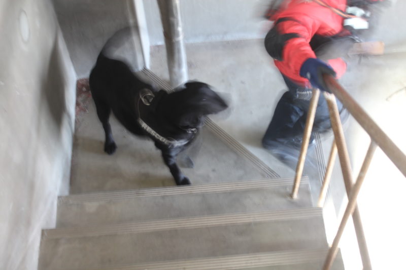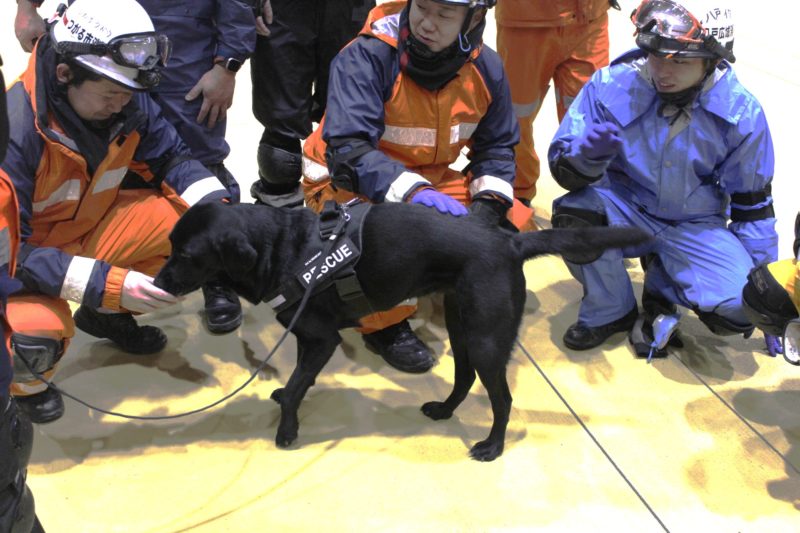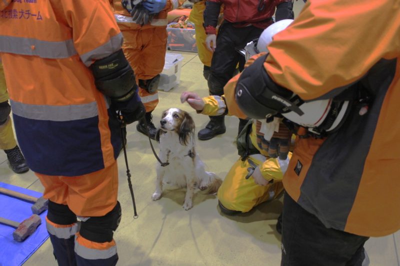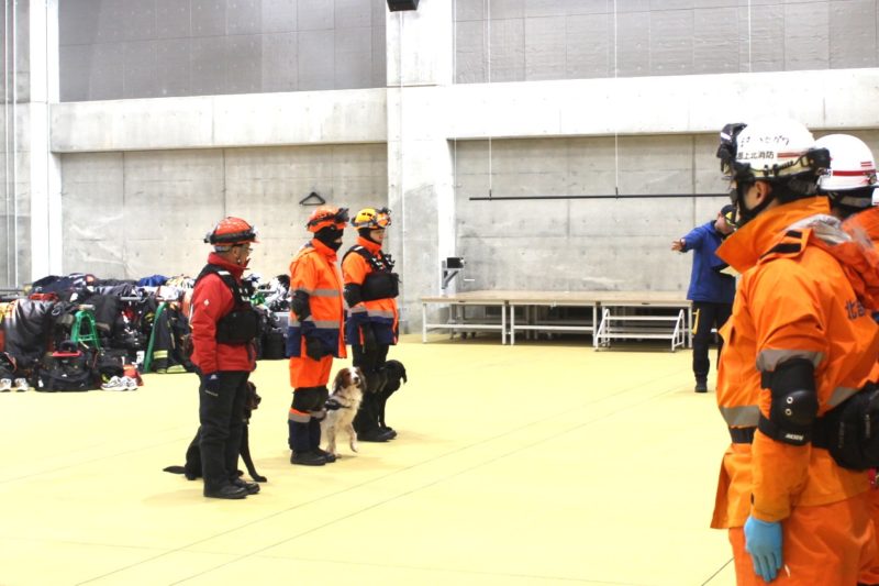 実際の現場を想定した訓練の内容は、消防の関係者が災害救助犬に、何をどこまで求めているのか分かるため、今後の訓練の目標としたいと思います。遠隔での捜索、アラートの条件、吊上げ吊下げなどなど。犬にとっても、ハンドラーにとっても、大変有意義な1日でした(岩本良二)。