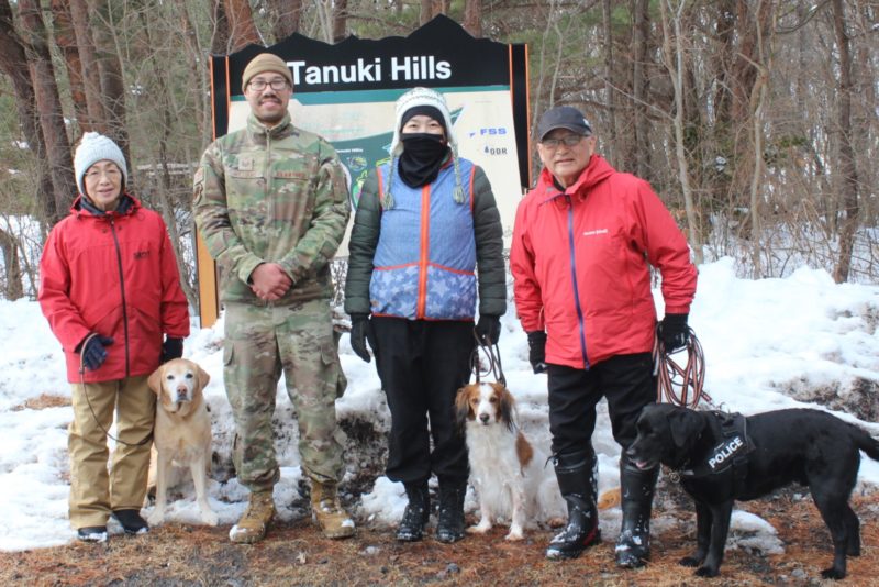 三沢米軍用犬、自衛隊警備犬と北東北捜索犬チームが合同訓練を行いました(三沢米軍基地)