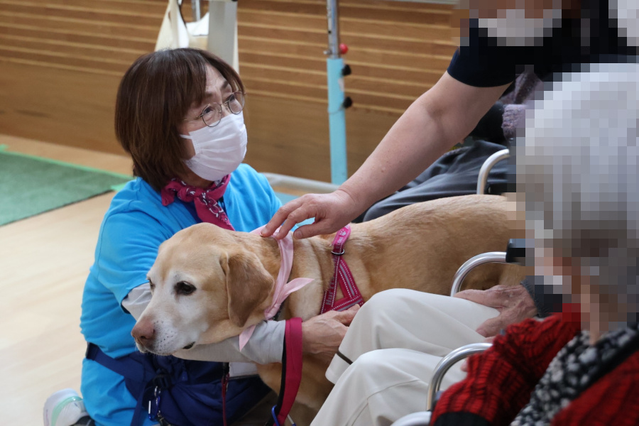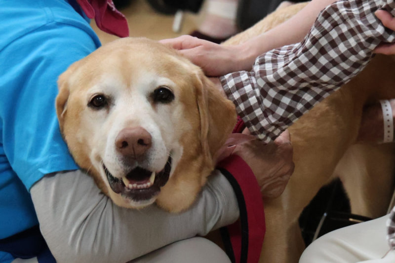 その後、ふれあいの時間です。おひとりずつ、ゆっくり犬たちに触れていただきながら、やさしく声をかけてくださったり、思い出話を聞かせてくださったりと、和やかな時間を過ごしました。