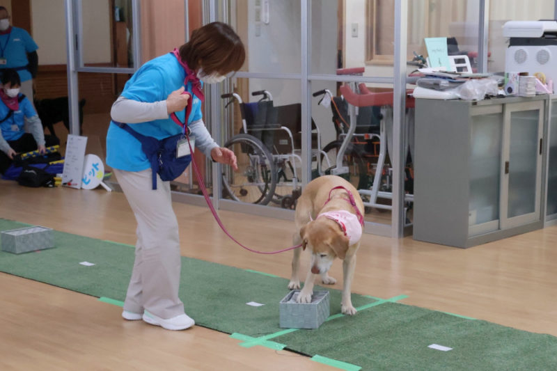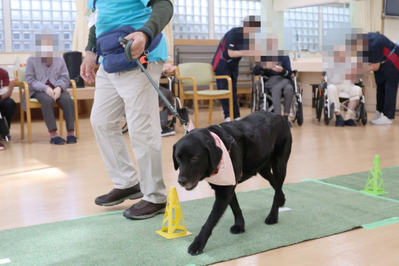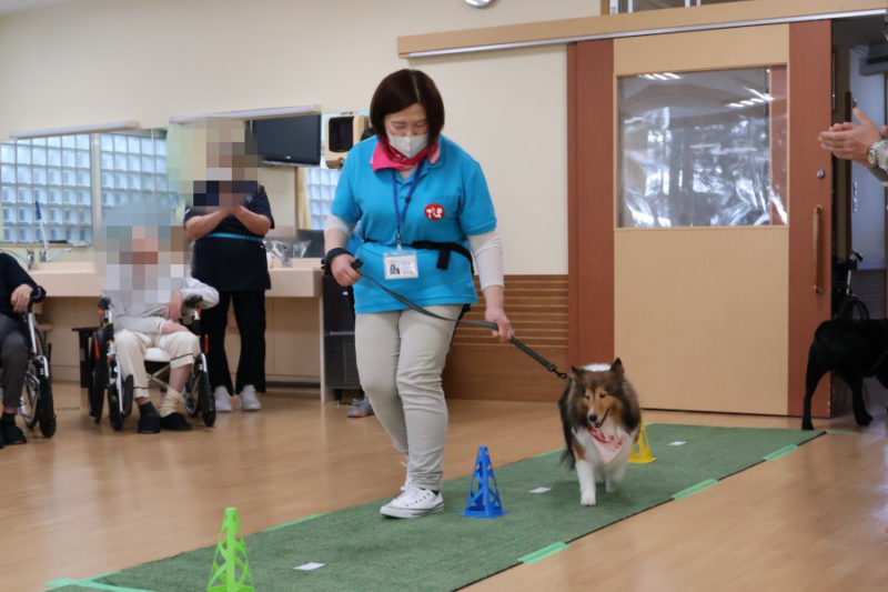 続いて、「トンネルくぐり」「ポールジャンプ」「みっけ」のトリックを行いました。犬たちが一生懸命取り組む姿を、みなさん楽しそうにご覧になっていました。